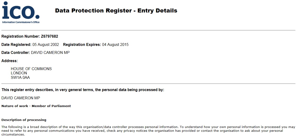 But, as I have written before, not all politicians appear to comply with these legal obligations under the DPA. And this morning I noticed lawyer Adam Rose tweeting about the fact that neither George Galloway MP, nor his Respect Party appeared to have an entry on the IC register. This certainly seems to be the case, and I took the opportunity to ask Mr Galloway whether it was correct (no response as yet). It is also worth noting that back in 2012 the IC stated that